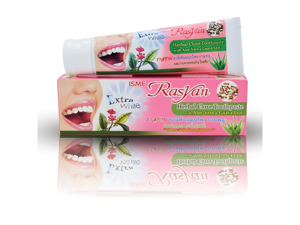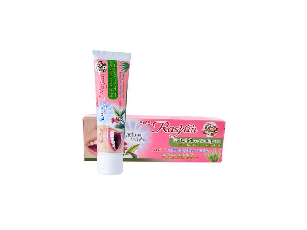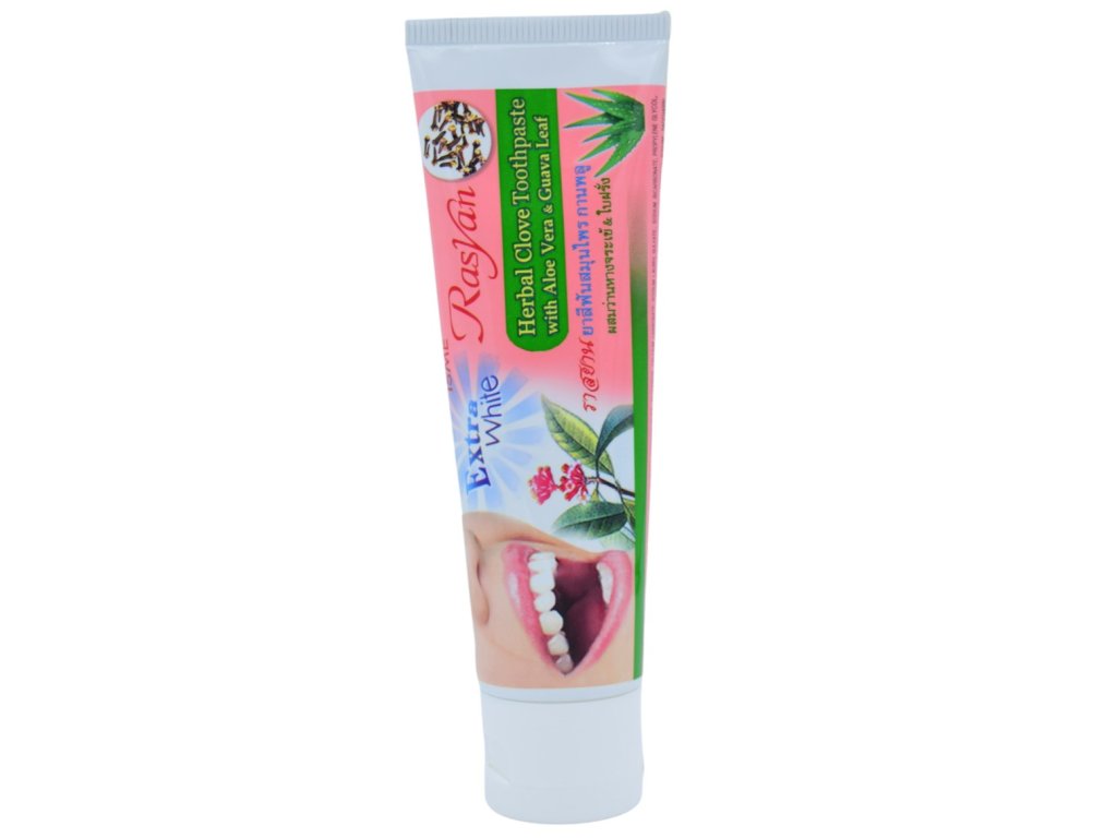 Rasyan Herbal Clove Extra white je bylinná zubní pasta určená pro každodenní péči o zuby a dutinu ústní.
